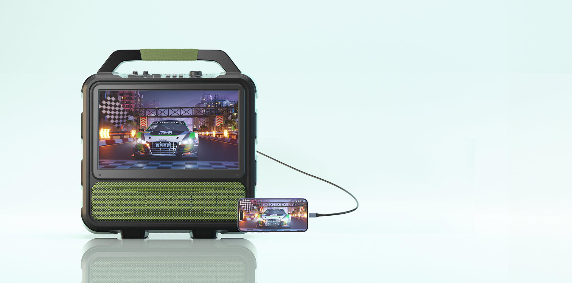 It features MIC and AUX inputs, two HDMI ports, a USB charging output and a USB-A port for USB stick reading and device charging, making it perfect for all your audio and video needs!